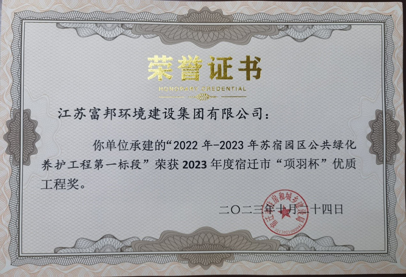 近日,由宿遷市蘇宿園區(qū)建設(shè)發(fā)展有限公司負責管理的蘇宿工業(yè)園區(qū)2022-2023年公共綠化養(yǎng)護工程第一、二標段,同時榮獲2023年度宿遷市“項羽杯”優(yōu)質(zhì)工程獎。