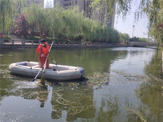 花開花落花滿地,清水碧波再蕩漾。隨著春季氣溫回升,4月中旬,園區(qū)各河道水草開始大面積繁殖,為了營造良好的水環(huán)境,確保河道暢通,建發(fā)公司高度重視河道水草清理和水環(huán)境保護(hù)工作,緊抓時(shí)間節(jié)點(diǎn),及時(shí)組織人員、設(shè)備集中開展河道水草清理,力爭在最短時(shí)間內(nèi)重現(xiàn)河道碧波蕩漾美景。