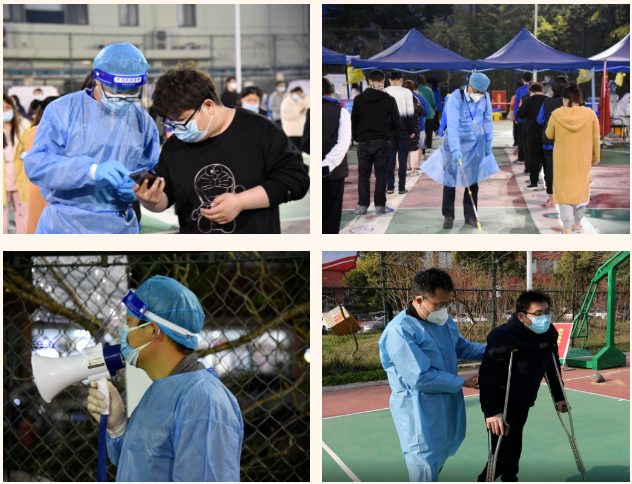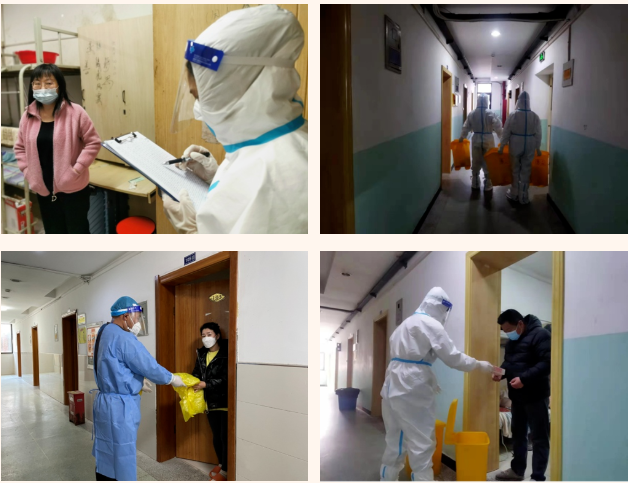 在這個集宿區(qū)內(nèi),有一群人奮戰(zhàn)在抗疫最前線。“大白”和“小藍”是他們最矚目的“通行證”、“工作證”,他們身份多樣,上演著超級“變、變、變”,他們既是細致入微的醫(yī)生助手,也是發(fā)放物資的大力水手,還是現(xiàn)場保障的行家里手。