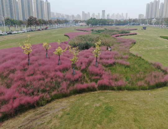 在中央商區(qū),成片的粉黛亂子草正值最佳觀賞期,云霧般的粉色花穗在陽(yáng)光下輕盈搖曳,已成為市民爭(zhēng)相打卡的“網(wǎng)紅”景點(diǎn)。“粉黛亂子草觀賞性雖高,養(yǎng)護(hù)卻需格外精心。”建發(fā)公司相關(guān)負(fù)責(zé)人介紹,為維持其最佳觀賞狀態(tài),園區(qū)采取了分區(qū)、分時(shí)的精細(xì)化養(yǎng)護(hù)策略。盛花期期間,養(yǎng)護(hù)人員會(huì)精準(zhǔn)控制澆水量,避免過多水分影響花穗形態(tài);雨季則及時(shí)排水,嚴(yán)防積水導(dǎo)致爛根。同時(shí),還安排了專人全天巡視,引導(dǎo)游客在指定區(qū)域文明觀賞,并對(duì)局部受損區(qū)域?qū)嵤?ldquo;點(diǎn)對(duì)點(diǎn)”修復(fù),確保每一株粉黛都能以最美姿態(tài),展現(xiàn)秋天的溫柔與浪漫。