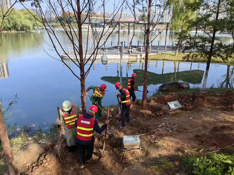 建發(fā)公司市政物業(yè)部根據(jù)今年氣候特點和苗木品種特性分階段性有計劃實施補植工作。提前做好死亡、缺失、長勢不良綠化苗木統(tǒng)計工作,同時針對補植量大的日本晚櫻綠化苗木開展專項考察工作;其次召開專題會議,要求施工單位根據(jù)苗木生活習(xí)性,堅持“先落葉、后常綠、先喬木、后灌木”的原則,結(jié)合今年氣候特點,合理安排補苗時間,確保入冬前全部補植到位;最后強調(diào)施工單位對新補植苗木澆灌“定根水、生根劑”和加強樹穴病毒消殺、支撐、防寒保暖等相關(guān)措施,提高苗木成活率。