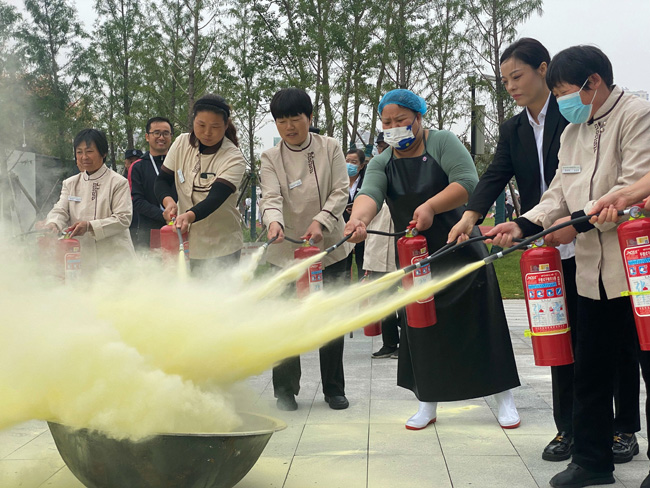 在活動(dòng)現(xiàn)場(chǎng),安全員向參與人員講解了如何正確使用滅火器方法和技能,總結(jié)了“提、拔、握、壓”四個(gè)步驟,并進(jìn)行了使用方法的演示。保安、保潔人員輪流進(jìn)行實(shí)際操作,逐步掌握滅火器的使用方法。