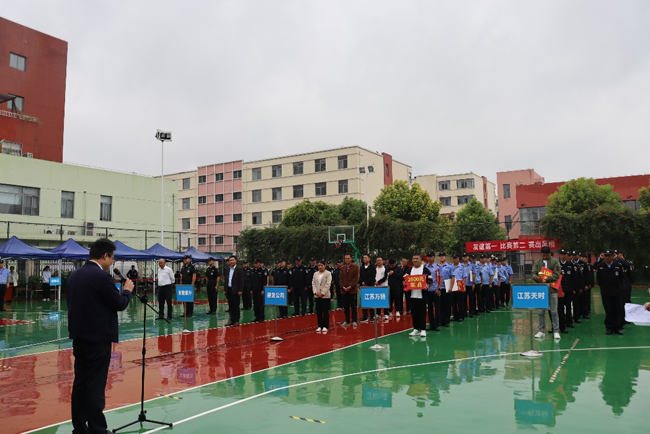 本次技能競賽科目分別是隊(duì)列展演、消防兩盤水帶連接、消防快速滅火操。隨著比賽“開始”口令的下達(dá),四支隊(duì)伍共70名參賽隊(duì)員身著保安制服,以飽滿的精神、高昂的氣勢、整齊的步伐以及響亮的口號震撼亮相。稍息、立正、敬禮與禮畢、正步走、齊步走……他們用整齊劃一的動(dòng)作、干凈利落的操作表演、扎實(shí)的軍事素養(yǎng),贏得了現(xiàn)場觀眾和評委的高度贊揚(yáng)和肯定!最終江蘇萬楊保安服務(wù)有限公司和江蘇天時(shí)物業(yè)管理有限公司獲評團(tuán)體第一名和第二名。
