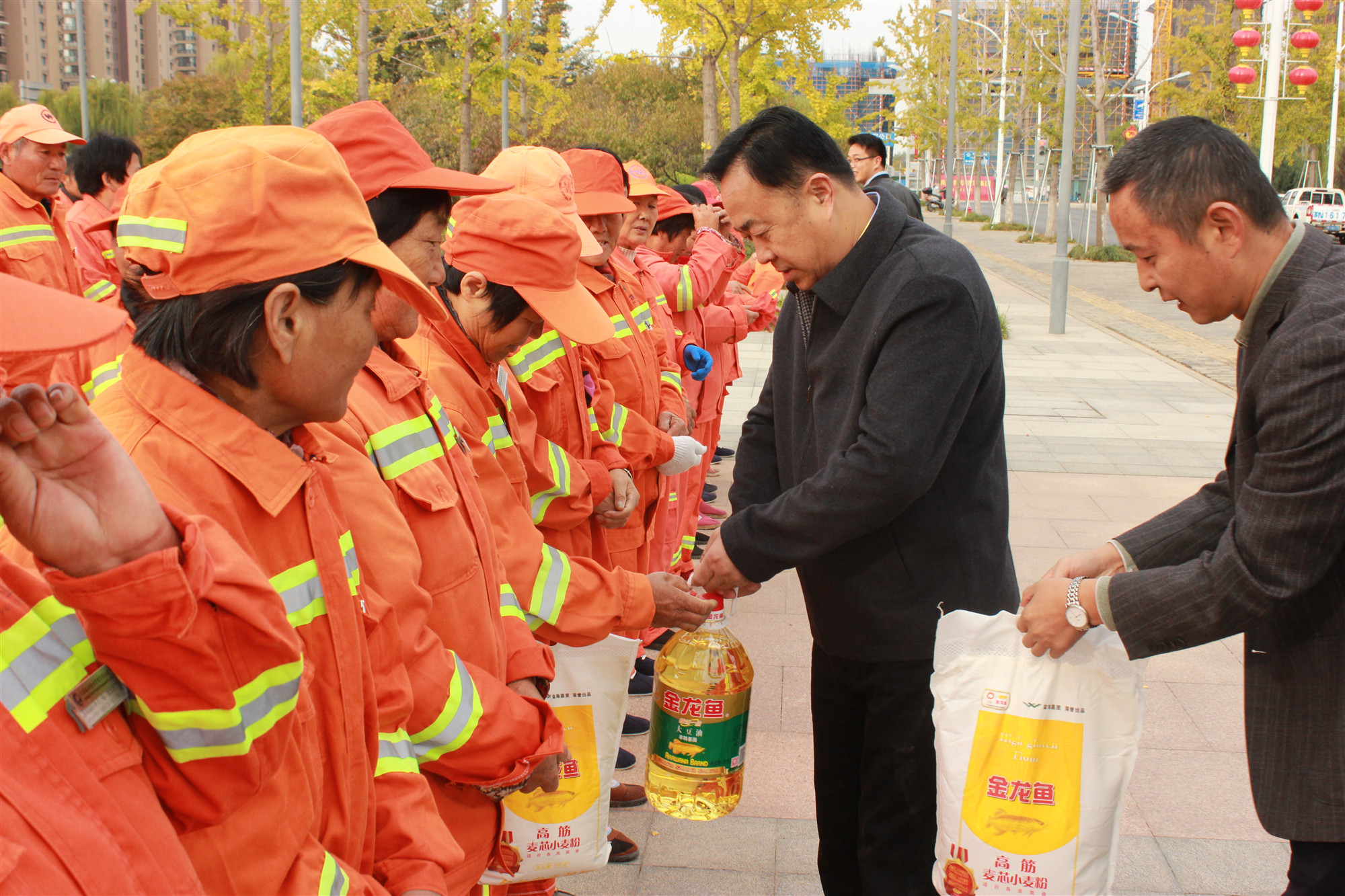 10月26日8時(shí)30分,園區(qū)黨工委委員、管委會副主任、規(guī)劃建設(shè)局局長邢全男帶隊(duì),親切慰問了環(huán)衛(wèi)工人,并向她們送上了節(jié)日的慰問,感謝她們?yōu)閳@區(qū)環(huán)境衛(wèi)生作出了貢獻(xiàn),并向她們發(fā)放了慰問品。