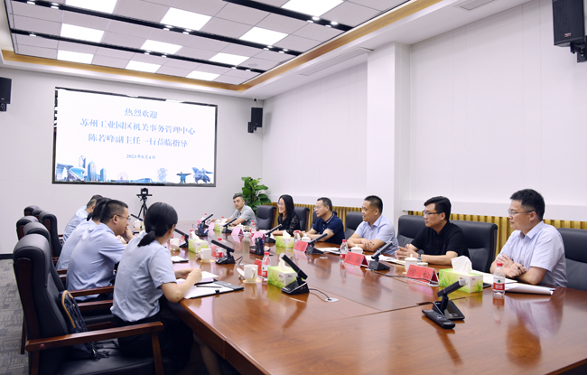 8月4日下午,蘇州工業(yè)園區(qū)機關事務管理中心陳若峰副主任一行到建發(fā)公司調研。園區(qū)黨工委委員、管委會副主任張漢華出席座談會,城發(fā)公司、建發(fā)公司管理層陪同調研、座談。