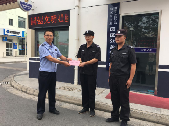 為表彰協(xié)助公安機關(guān)抓獲市局督辦系列盜竊案件嫌疑人的見義勇為行為,9月21日,蘇宿工業(yè)園區(qū)公安分局一行人來到園區(qū)公舍,根據(jù)《宿遷市見義勇為基金會獎勵撫恤辦法》和《宿遷市聯(lián)防保安人員見義勇為獎勵辦法》相關(guān)規(guī)定,研究決定對7月23日晚成功擒獲“園區(qū)公舍系列盜竊案”嫌疑人的兩名園區(qū)公舍保安張可、鞠銀龍進行獎勵。