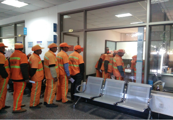 根據(jù)前一天的安排,環(huán)衛(wèi)工人早早來(lái)到集合地點(diǎn)統(tǒng)一乘車到了市疾控中心參加免費(fèi)體檢,拿著早一天分到的體檢明細(xì)單,緊張有序地進(jìn)行每一項(xiàng)檢查,外科、內(nèi)科、心電圖、彩超、胸透、肝功能、腎功能等如此系統(tǒng)全面的健康檢查,對(duì)于他們中的大部分人都是頭一回。參加體檢的環(huán)衛(wèi)工人紛紛表示,此次體檢能夠讓他們更加了解自身的健康狀況,感謝政府的關(guān)心,我們將更加努力干好工作,使城市的環(huán)境更加干凈整潔。