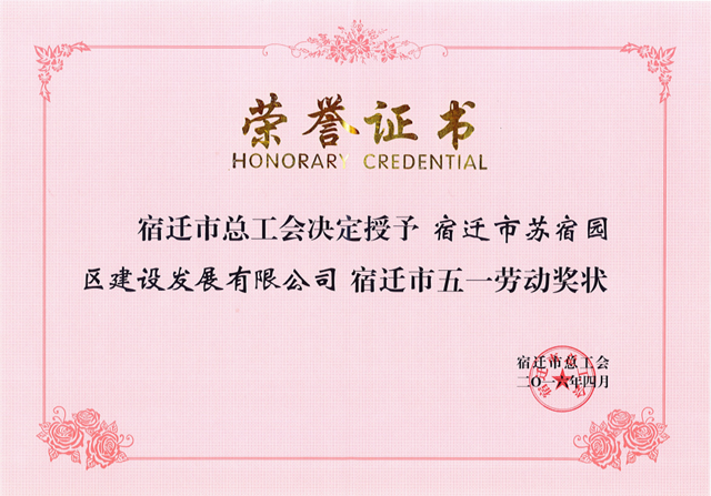 4月29日,在宿遷市慶祝五一國際勞動節(jié)暨表彰五一勞動獎大會上,公司被授予宿遷市“五一勞動獎狀”榮譽(yù)稱號。