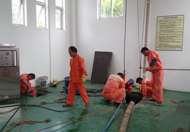 本次維護(hù)重點(diǎn)工作是泵站清淤及潛水泵檢查維護(hù)。經(jīng)過長期運(yùn)行,污水泵室及管道內(nèi)積聚了大量污泥、雜物,造成淤積,影響污水泵的正常運(yùn)行。為了確保污水正常流入泵室,每半年將組織清淤一次。同時(shí),對3臺潛水泵進(jìn)行檢查,補(bǔ)充黃油,確保3臺泵都能正常運(yùn)行。